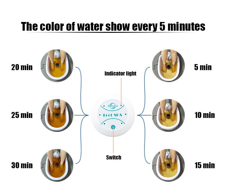 This portable ion foot bath offers a convenient and relaxing foot soak experience wherever you are. Comes with a split structure style and bubble function for extra comfort. Requires no heating and is simple to operateâideal for personal foot care routines. A perfect self-care accessory for your home or travel.